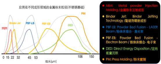 金屬粉末成形技術(shù)在發(fā)展數(shù)千年的歷史之后(最早在古埃及發(fā)現(xiàn)氧化鐵燒制的金屬制品,紀(jì)元前3000年),但是要談到大量制造還是在19世紀(jì)初的50年代開始,然而愛迪生發(fā)明電燈促使了粉末冶金(Powder Metallurgy, PM)的工業(yè)進步 – 鎢燈絲的制作已經(jīng)是20世紀(jì)之初(1909年),隨后鐵與銅金屬的粉末壓制與燒結(jié)(Press and sinter)便隨工業(yè)革命的帶動迅速取代傳統(tǒng)金屬加工的方法,尤其是在鑄造和鍛造的齒輪件;在近代約50年前(1960-1970年),金屬粉末成形技術(shù)迎來了兩個重要的年輕成員,金屬粉末注射成形(Metal – powder Injection Molding)與金屬增材制造(Metal Additive Manufacturing),更是成為人類有史以來最頂尖的大量金屬零件制造工藝。請隨Dr. Q的隨后說明來了解這三個當(dāng)代主流金屬粉末成形技術(shù)。最重要結(jié)論l金屬粉末成形技術(shù)的核心是粉末科學(xué),這是重中之重;l粉末壓制與燒結(jié)法(PM),成形過程的潤滑劑(成形助劑)不超過3wt%,燒結(jié)后零件密度在85-95%相對密度、表面沒有致密層、幾何形狀為2-2.5D的大批量制品,適合單筆訂單大于10萬件的月產(chǎn)能;l傳統(tǒng)壓制成形的粉末硬度低必須具有塑性變形能力,較硬質(zhì)粉末與硬質(zhì)合金的粉末冶金需要的成形助劑含量較高,因此也需要長時間的脫脂;l金屬粉末注射成形(MIM),因為粉末細小導(dǎo)致黏結(jié)劑(成形助劑>6wt%)較多,燒結(jié)后零件密度大于98%相對度、表面形成致密層、幾何形狀為3D的批量制品,適合單筆訂單大于1萬件的月產(chǎn)能;l金屬增材制造(MAM),燒結(jié)后零件密度大于98%相對密度、表面沒有致密層、幾何形狀為3D的少量制品,適合1~1000件以內(nèi)的月產(chǎn)能。成形助劑根據(jù)MAM工藝不同而有區(qū)別。1.對于PM/MIM/MAM所使用的粉末可不可以共享?為什么?答:如圖1所表示,三大主流金屬粉末成形技術(shù)使用的粉末粒徑分布,其中PM最粗大、MIM最細小,增材制造則居中(包含圖中的Binder Jet, PBF-LB, PBF-EB, and DED)。