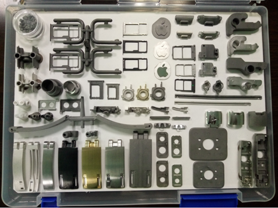 5. 每件產(chǎn)品的重量都超過100g以上的不同PM制品展示,:(a)VVT(可變氣門正時)轉(zhuǎn)子/鏈輪;(b)鋁合金鏈輪;(c)軟磁定子;(d)橡膠包覆進/排氣凸輪軸定子鏈輪(本零件榮獲世界PM2018產(chǎn)品獎);(e)密度≥7.53 g/cm3的打擊塊(本零件榮獲世界PM2018產(chǎn)品獎),所有照片均由寧波東睦集團NBTM提供。4.2 MIM製品MIM制品如圖6所表示,都是一些形狀復(fù)雜的零件且產(chǎn)品重量沒有超過50g,大部分都低于10g甚至有0.5g的小產(chǎn)品。 圖6.